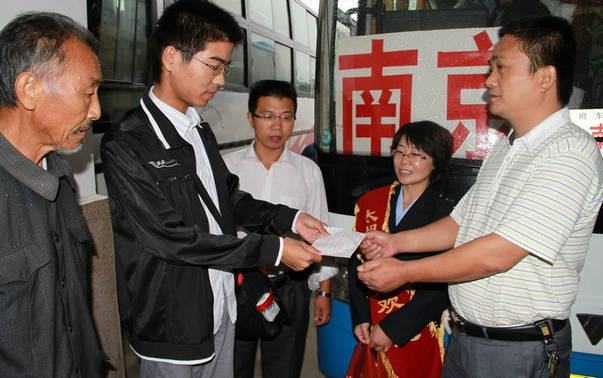 太湖分公司領(lǐng)導(dǎo)得知姐弟倆的情況后,隨即與考生所在鄉(xiāng)村取得聯(lián)系。決定從公司緊張的辦公經(jīng)費(fèi)中解決姐弟倆大學(xué)期間的路費(fèi)。9月10日是弟弟陳先義報(bào)道的日子,太湖分公司領(lǐng)導(dǎo)曹全龍同志代表太湖分公司全體汽運(yùn)人親手將兩張?zhí)聊暇┑能嚻彼偷疥愊攘x同學(xué)手中,并鼓勵(lì)他們樹立信心,正確面對(duì)暫時(shí)的困難,好好學(xué)習(xí),以過硬的本領(lǐng)回報(bào)社會(huì)。受助大學(xué)生陳先義對(duì)太湖分公司的無(wú)償援助表達(dá)了感激之情。