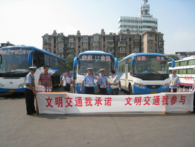 9月4日,市客運(yùn)分公司與交警支隊(duì)二大隊(duì)在安慶汽車站停車場(chǎng)內(nèi)開展“文明交通我承諾,文明交通我參與”駕駛員簽名活動(dòng);顒(dòng)首先由交警支隊(duì)二大隊(duì)二中隊(duì)楊指導(dǎo)員宣傳5種易發(fā)生道路交通事故的不良及違法駕駛行為,楊指要求駕駛員駕駛車輛做到:不超員、不超速、不疲勞駕駛、不酒后駕駛、不無(wú)證駕駛,做文明禮讓安全行車的文明駕駛員;隨后進(jìn)行了駕駛員簽名,市客運(yùn)分公司110名未當(dāng)班的駕駛員參加了本次簽名活動(dòng)。