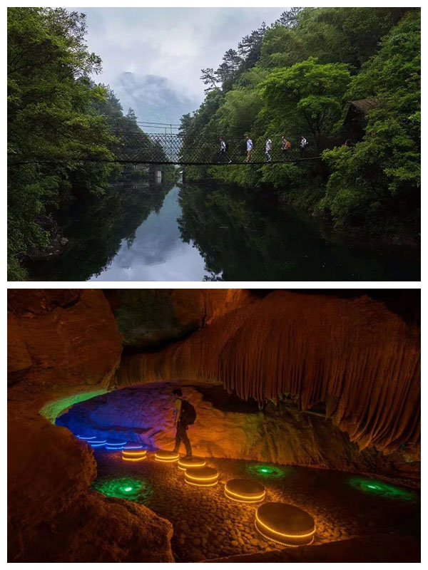 下午:中餐后游覽慈云洞,慈云洞與石臺醉山野洞一脈相承,洞內(nèi)景觀集中,鐘乳累累,景水相連,步步有景,清秀俊美,并有地下河從洞內(nèi)蜿蜒而出。該洞以佛教慈孝文化為主題,選用佛教佛陀孝母、西風和尚、目連救母、地藏菩薩等慈孝故事,利用洞內(nèi)自然景觀、人文塑景和洞外的生態(tài)旅游區(qū)為背景,結合現(xiàn)代LED燈效、電子、舞美等科技打造成為皖南第一個集觀光、藝術教育、溶洞探險、地質(zhì)科普為一體的慈孝主題幻境溶洞。